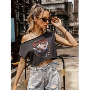 Gray Graphic Crop Tee Shirt California Los Angeles Eagle