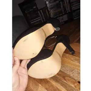 Condition: Like new! These were worn once for a short time. Only flaw is that this is a tiny bit of wear to the bottoms (see photo). Otherwise in perfect condition! All rinestones are there, none are loose. No nicks in heel stems. Footbeds are clean and have no scratches! In seriously good condition! Practically brand new except for a little normal wear to bottoms.