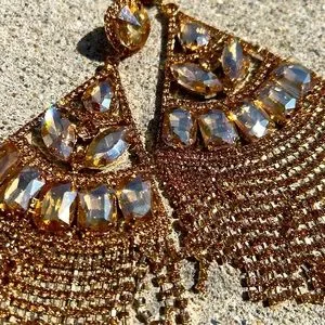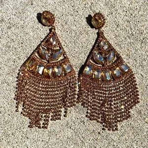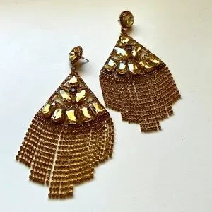 NWOT large gold rhinestone earrings - more on the rare side in terms of color! Measure 5.5” long x 2.75” wide. VERY big showstopper earrings!
