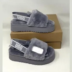 UGG Women's DISCO Slides Gray White Women's Size 1112258 SAMT