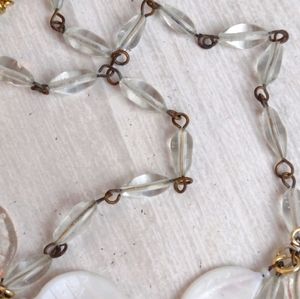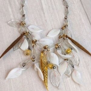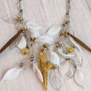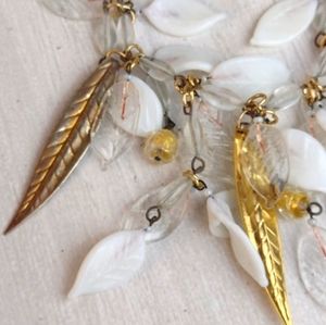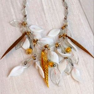 ♥️SOLD♥️ Golden Leaves Beaded & White Leafed Fringe Gold Tone Necklace