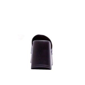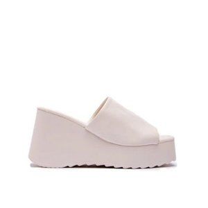 With an extra-wide strap, ultra-chunky wedge and vegan leather material, this platform slide is a standout style statement. Vegan leather upper with synthetic lining and a rubber outsole