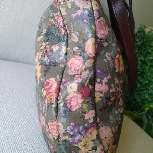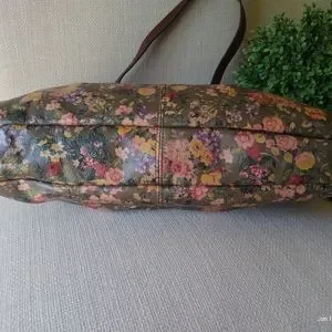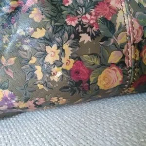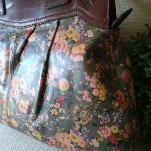 Patricia Nash English country floral satchel bag in good used condition. The whole body is generally in good condition except for a few discoloration on one of the sides. It seems that the color has come, please pay attention to the last photos.It also has small discolorations typical of the brand because I have already seen others with this same issue, but it does not affect the performance of the bag at all. The interior is lined, clean and without cuts. It comes without a long strap.