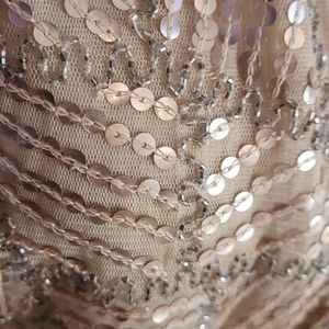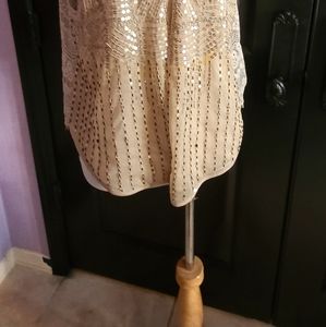 Chicos Khaki Sequin Embellished Lace Vest Cottagecore Women's Size 2