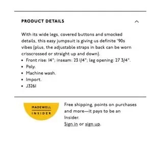 Madewell Smocked Button-Front Crop Jumpsuit