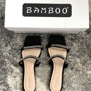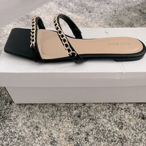 Cute gold double chain band black sandals.