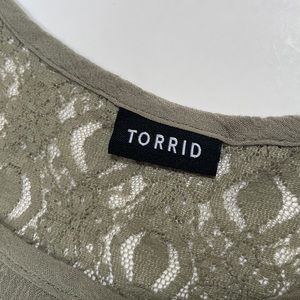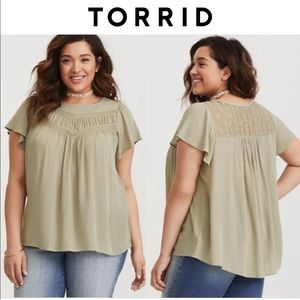 🍀Torrid top with ruffle sleeves and lace embellishments