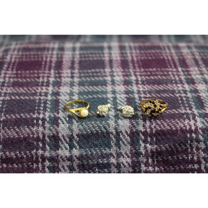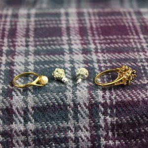 One ring with red and white rhinestones in a floral raised swirl pattern size 7