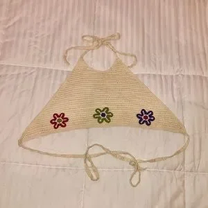 🌸Zara Macrame Crochet Crop Halter Top With Flower Detail☀️