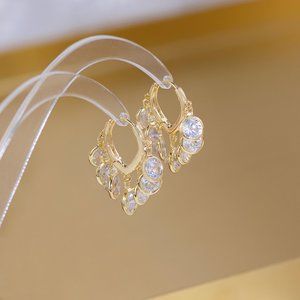 NEW 14K Gold Plated Round Diamond Drop Huggie Hoop Earrings