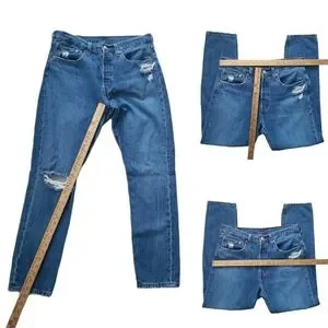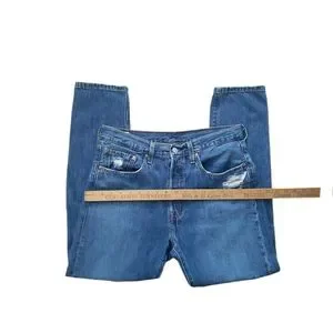 Levi's 501 Skinny Premium Jeans Big "E" Denim Blue Wash Distressed Size 30 hi Ri