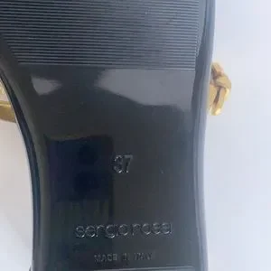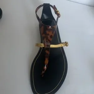 Sergio Rossi patent leather, leather and jelly. T strap sandal , black, gold and tortoiseshell, size 7 Worn inside only, new, very good condition