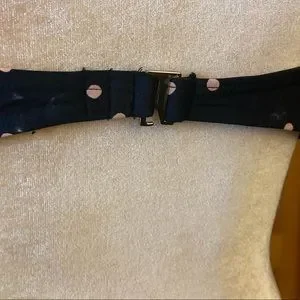 Black /Navy Blue bikini with light pink polka dots -gold hardware -ruffle straps -padded with underwire -brand new without tags -msrp $145 -nylon/spandex blend. Strapless version.