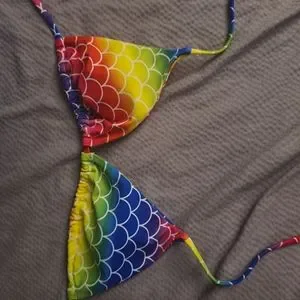 Small rainbow swimtop. worn once but too small. No stains. Like new! Smoke free home!