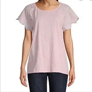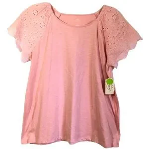 St. John’s Bay | Top Size XXL Eyelet Flutter Sleeves Pink Casual Tee NWT