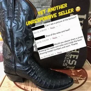We again urge you to do your due diligence when purchasing so trusted boot sellers can be here to serve you, & most importantly, your hard earned money ain’t blowin in the wind! As James Bond says, “I know the rules, & number one is: there’s ‘no deals’.”