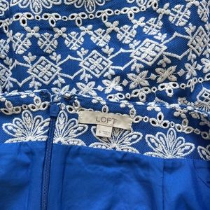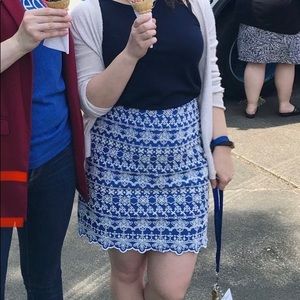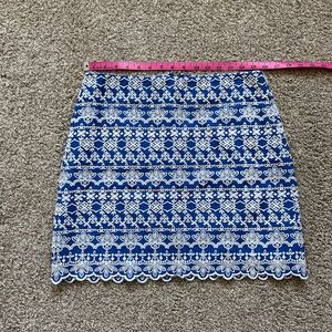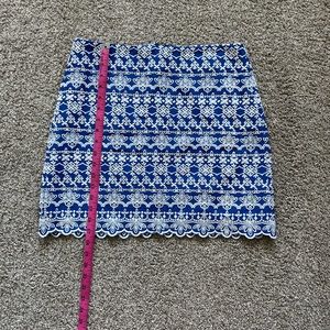 LOFT blue and white embroidered skirt