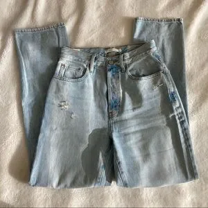 Pacsun loose baggy straight leg boyfriend jeans with holes in the knees. Light wash and high waisted, size 26