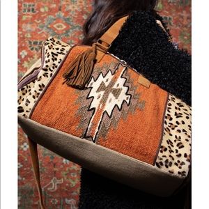 Boho hippie gypsy western travel duffle leopard vintage leather Navajo tribal southwest ethnic handmade summer vacation fall camping overnighter trendy safari classic weekend trip