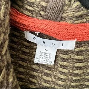CABI green chunky knit floral embroidery hooded duster cardigan sweater womens M