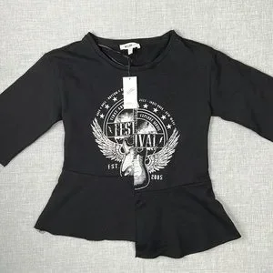 William Rast Black & White Offset Graphic Sweatshirt Tee Juniors Size XS