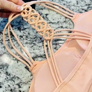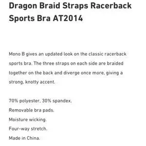 MONO B Dragon Braid Straps Racerback Sports Bra PINK / BLACK SZ SMALL MED LARGE