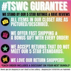 Please check out our closet for more great finds UPDATED DAILY with NEW & NWT items with a variety of brands in a range of sizes, colors, and styles for everyone. #TSWC represents a group of friends who contribute to our "Collective Closet" in order to make sure we have something for everyone! With designer items, athletic wear, workwear, casual pieces, loungewear, athleisure, great classic staples, accessories, premium denim, jackets, vests, all kinds of tops, and dresses for any occasion you can find just about everything - and if there is something you can't find or are looking for - we will find it!