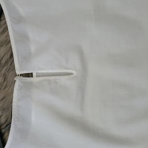 100% cotton, loose fit, keyhole with button closure in the back, scoop neckline with scalloped hemline