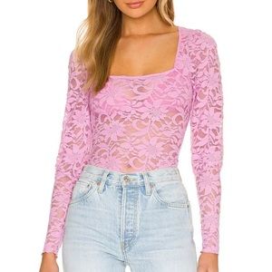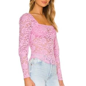 π Revolve X Free People Long Distance Layering Long Sleeve Sheer Lace Top Pink New With Tags π