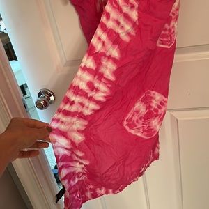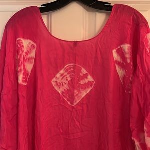 Perfect over a swimsuit or pair it back to a tank and shorts. It is a really pretty pink. I bought it from South Moon Under. No size, no brand. 100% Rayon.