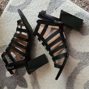 CP "Hayden" 10W black block style heels zipper medial foot gladiator style