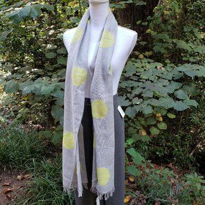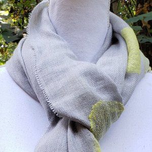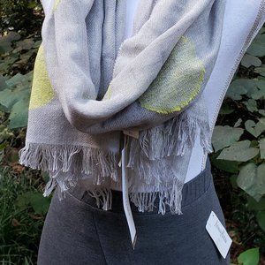 TALBOTS Wool Blend Fringed Scarf Oblong Grey Chartreuse New