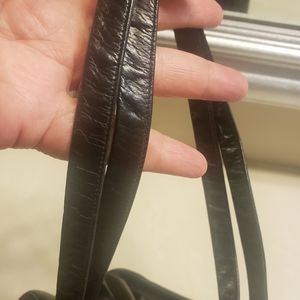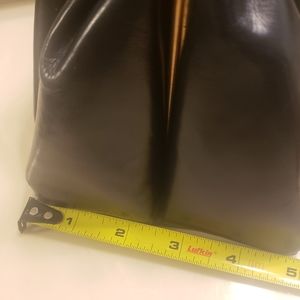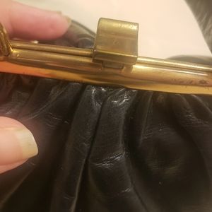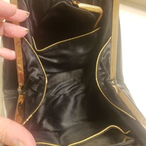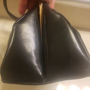Vintage Black leather Lewis top handle bag with change purse, mirror and comb