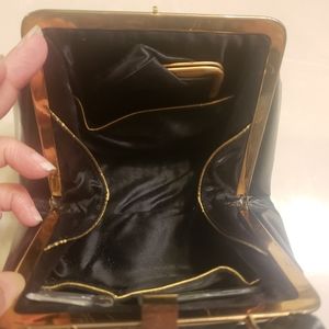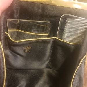 Vintage Lewis bag, complete with original change purse, mirror and comb which is so very rare to find complete. overall very nice condition. corners do have some slight wear but would not be noticeable as you carry the bag. see pics for measurements. truly a special bag for a party, wedding etc.
