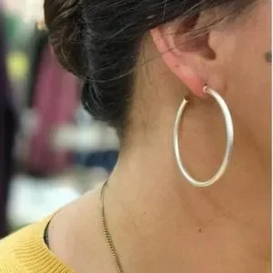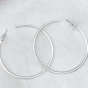 Matte silver plated hoop earrings. 2" radius.