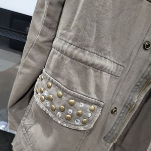 Very rare Miss me studded, embroidered army green jacket, 4 pockets in the front, 2 draw strings, tons of detail. Retail $249