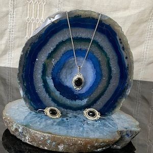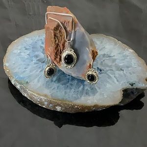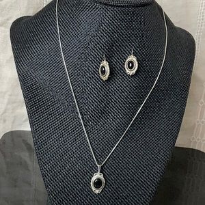 Vtg.(1980) 18” Sterling Silver Necklace W/Onyx Pendant & Matching Earrings