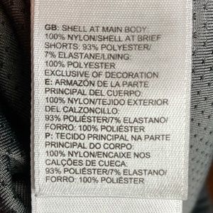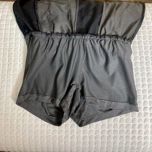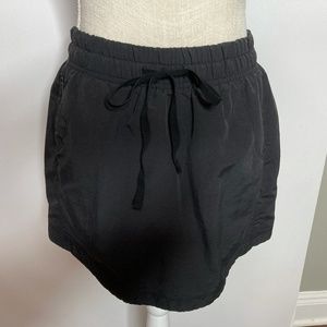 Pull on style, drawstring waist. Two front zippered pockets. Mesh skort. Excellent pre-owned condition, no stains or flaws, smoke free home. Shell 100% nylon, brief shorts 93% polyester, 7% elastane. Machine wash cold, tumble dry low. Measurements: waist 14 inches; length 15 inches.