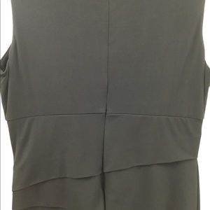 This is the most amazing little black dress in that it is very stylish and figure friendly. I normally wear. Size 10 in WHBM, but upsized to a 12 in this and it was perfect. While snug, the cross-cross of fabric gives you a smooth, flattering look. The neckline is equally as flattering. Measurements pit to pit 18 1/2”, shoulder to hem 38”…plenty of stretch top to bottom. Perfect for evening or special events. Excellent condition, only worn twice