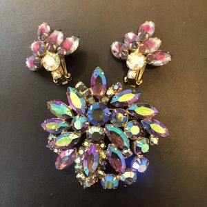 ❤️ Vintage Iridescent Brooch & Earrings Set