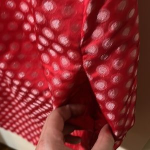 Res with silver polka dots two shades, sequins large solid silver, smaller silver, silver cylinder beads. Two pockets on sides 100% Rayon RN#81913? Fashion forward dress India style or even and airy summer dress.