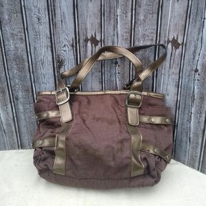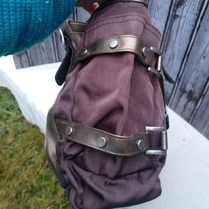 Rip Stop Nylon Faux Leather Buckle & Strap 3 Compartment Shoulder Bag
