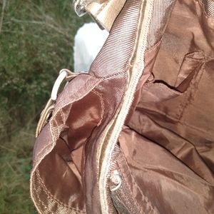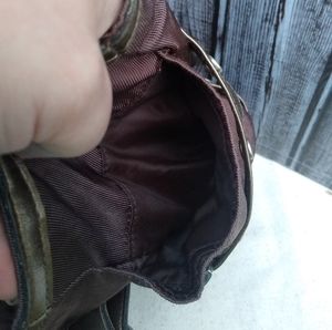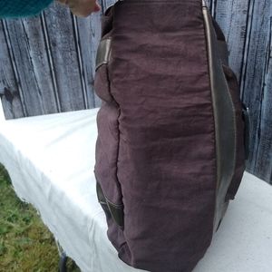 Seam pulled out at top of one exterior pocket, storage bends in faux leather (esp handles)