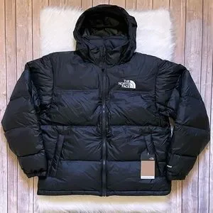 New With Tags- The North Face Men’s 1996 Retro Nuptse Windproof Water Repellent Jacket In TNF Black With Stowable Hood, Front Zip Closure, Zippered Hand Pockets, Hem Cinch Cord And 700 Fill Goose Down Insulation.