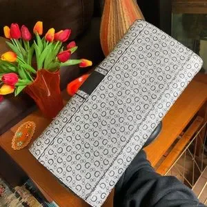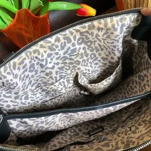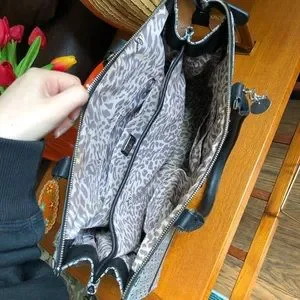 Inside is stained with what looks like coffee but also matches the print? Not sure what happened but doesn’t affect the usability and doesn’t smell at all.