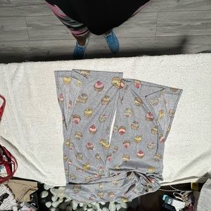 Printed wide leg loungewear - simple pleasures- medium - cupcakes print with a little opening on the sides