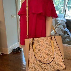 Calvin Klein Large Monogram Purse w shoulder strap & satchel handles