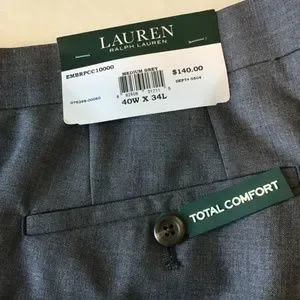 NWT Ralph Lauren Dress Pants/Slacks. Total Comfort Trousers. Beautiful gray fabric Size 40 X 34.