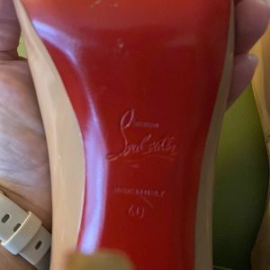 EUC Christian Louboutin Very Prive 120 Nude Patent Leather Open Toe Heels Sz 40