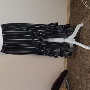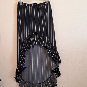 Beautiful sexy flare skirt. wear on the side or front. comes up high, I have the matching top in another listing in my closet. Black wth cream stripe. Nice weight to keep it flowing. women M .new wth tags. I have several tops that would match this skirt in my closet.